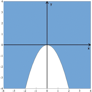 Since we require that the term under the square root be positive we must have y > x2. A graph of this domain is shown below and the graph of the surface the function represents follows that.