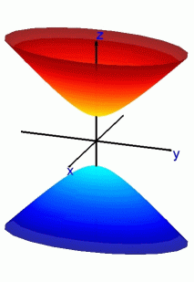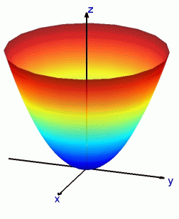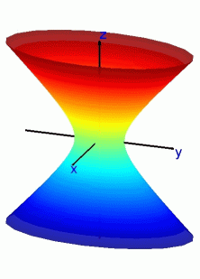 Some of the first curves that we learn are the line, parabola, circle, ellipse, and hyperbola. These have their counterparts as surfaces in three dimensionsal space. The plane, sphere, paraboloid, ellipsoid, and hyperboloid of one and two sheets. These are as shown below. These of course aren't all representations of functiions. Can you explain why?