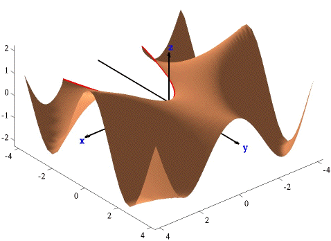 Another way to understand the structure of a function of two variables is to look at the curves or traces cut by planes that are parallel to the coordinate planes. Consider the surface created by the function f(x,y)= x2 y2, know as the saddle surface, a hyperbolic paraboloid. This is shown in the figure below.