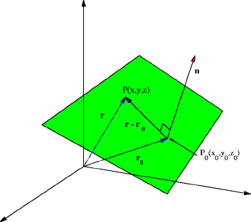 r0 be the vector from the origin to P0 and r be the vector from the origin to P.  Referring to the figure below  we have that