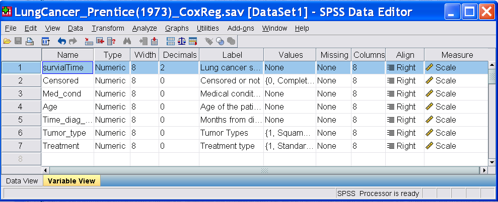 The following is the Variable View in SPSS: